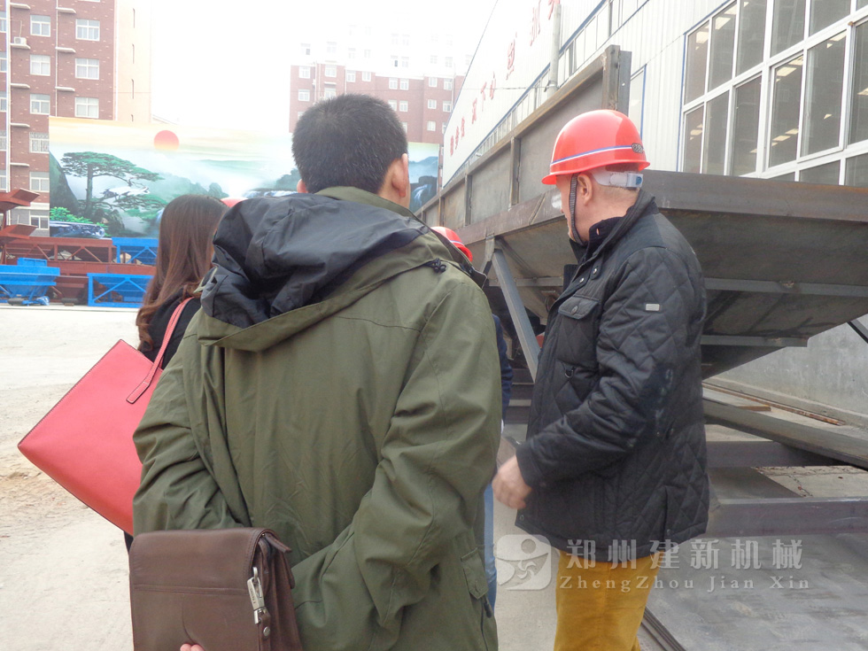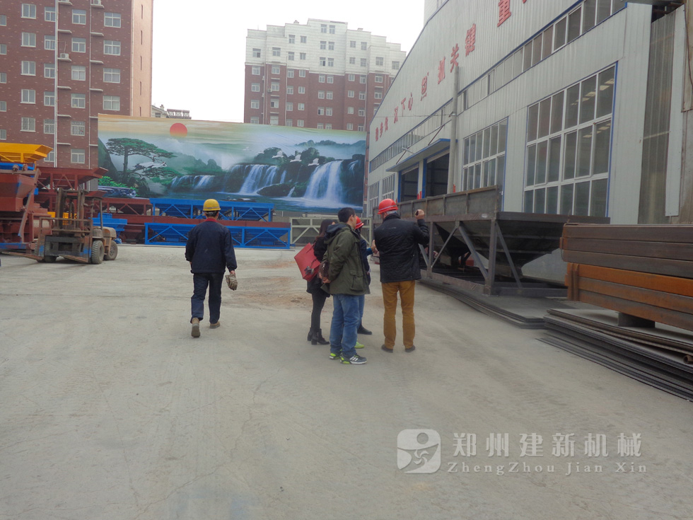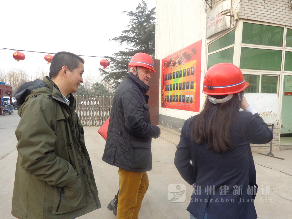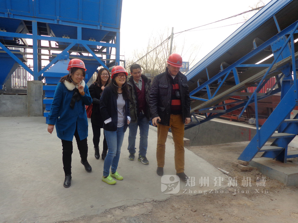 2014年11月,來自俄羅斯的客戶來到鄭州建新公司簽訂了兩套時產(chǎn)120方混凝土攪拌站設備的大訂單,下圖為建新公司銷售部劉經(jīng)理、經(jīng)理帶客戶參觀建新公司的生產(chǎn)車間及成品貨場。