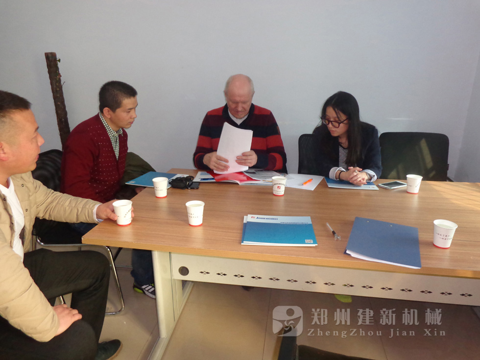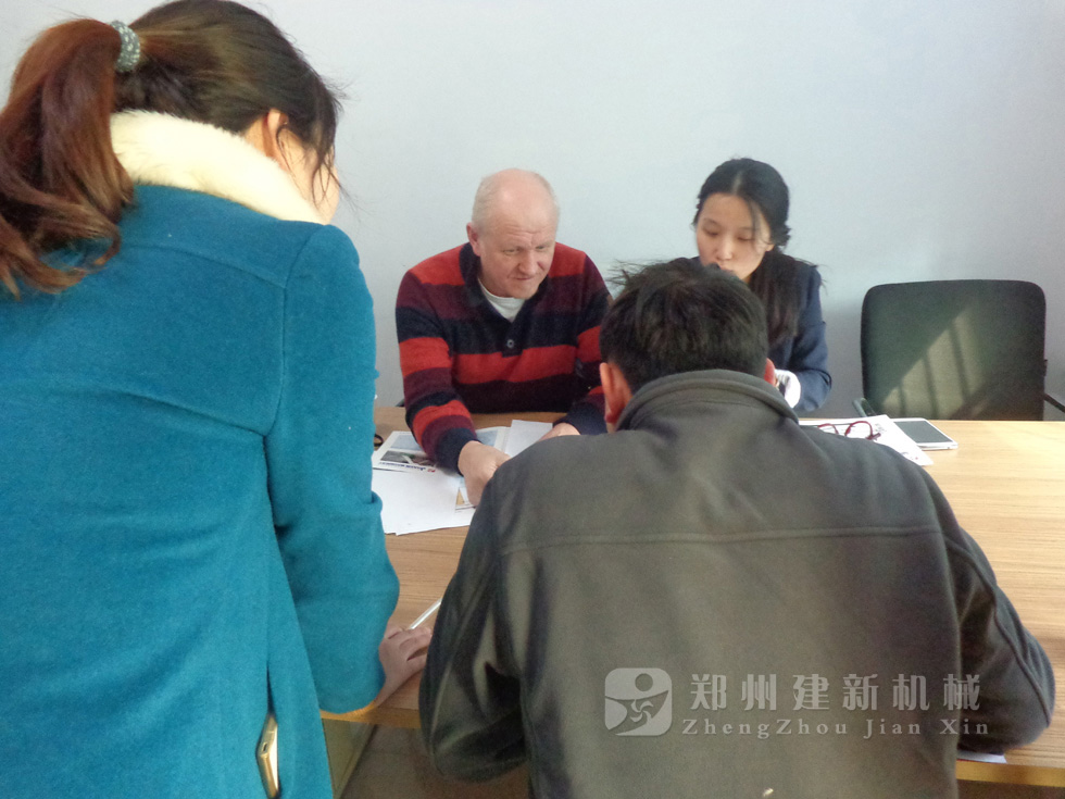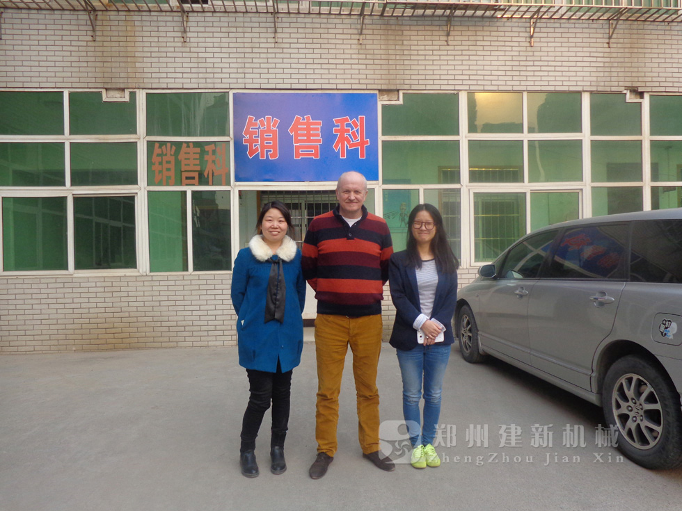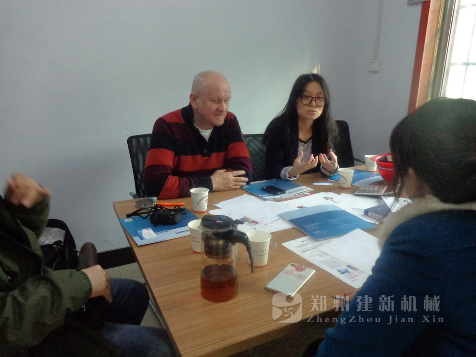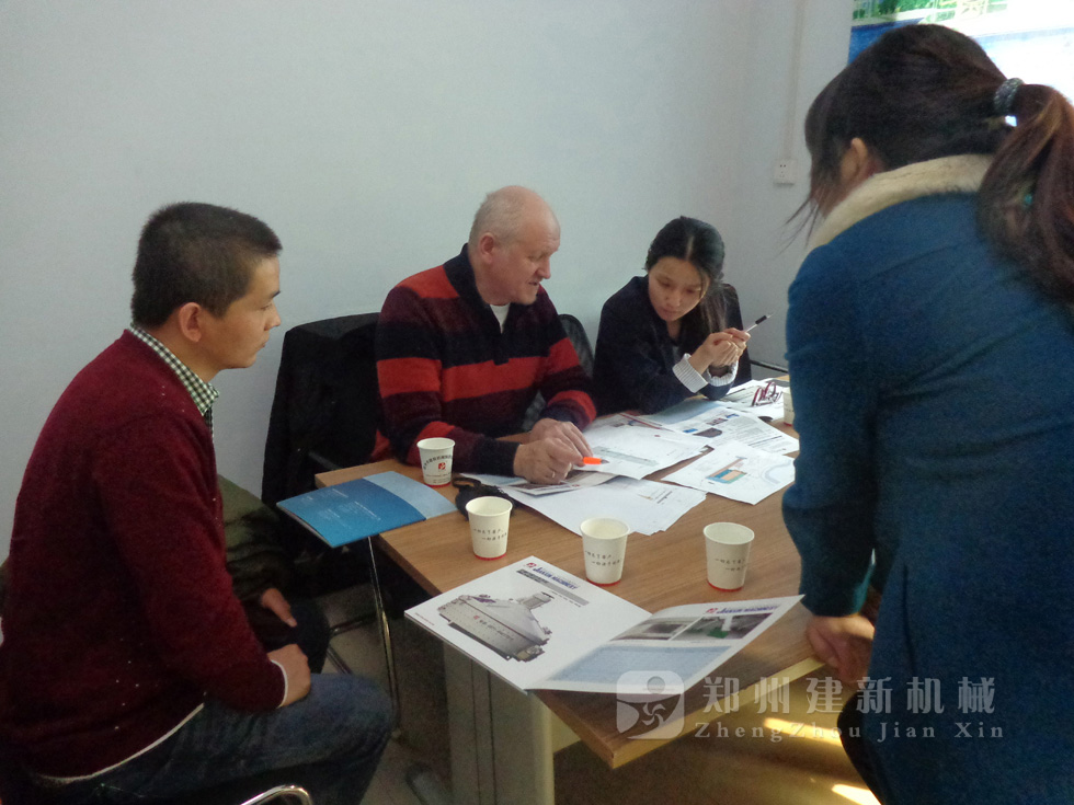 2014年11月,來自俄羅斯的客戶來到鄭州建新公司簽訂了兩套時產(chǎn)120方混凝土攪拌站設備的大訂單,下圖為建新公司銷售部劉經(jīng)理、經(jīng)理帶客戶參觀建新公司的生產(chǎn)車間及成品貨場。